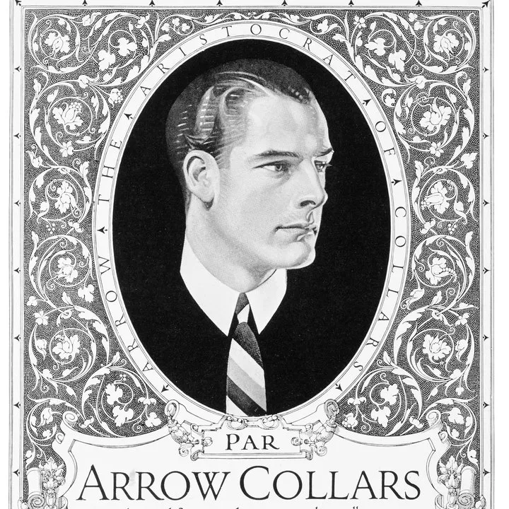 Launched in 1905, Arrow did something unprecedented: it shifted attention away from the detachable collar itself and toward the man who wore it. The Arrow Collar Man, illustrated by J. C. Leyendecker and developed in collaboration with the advertising agency Calkins & Holden, was not a product demonstration but an ideal. Confident yet restrained, modern yet disciplined, he embodied an aspirational masculinity that resonated deeply with American consumers. Shirts and collars were no longer utilitarian necessities—they became symbols of identity.