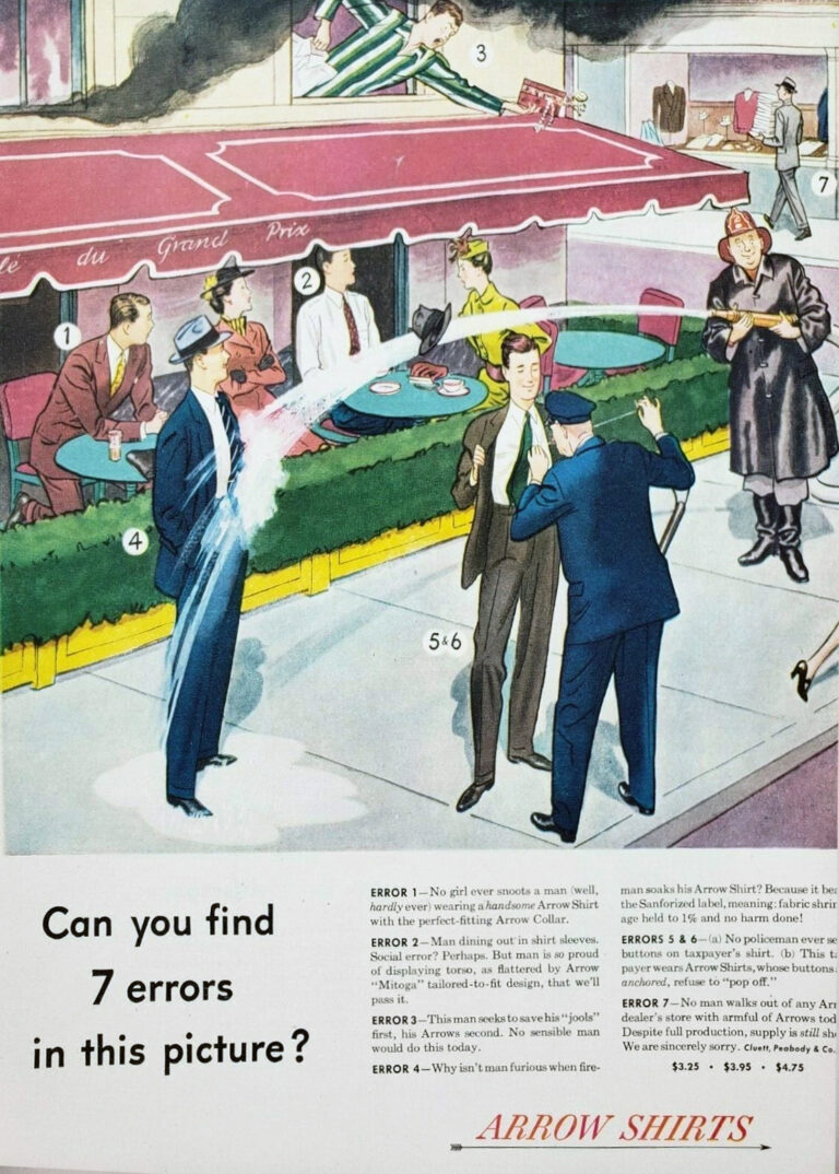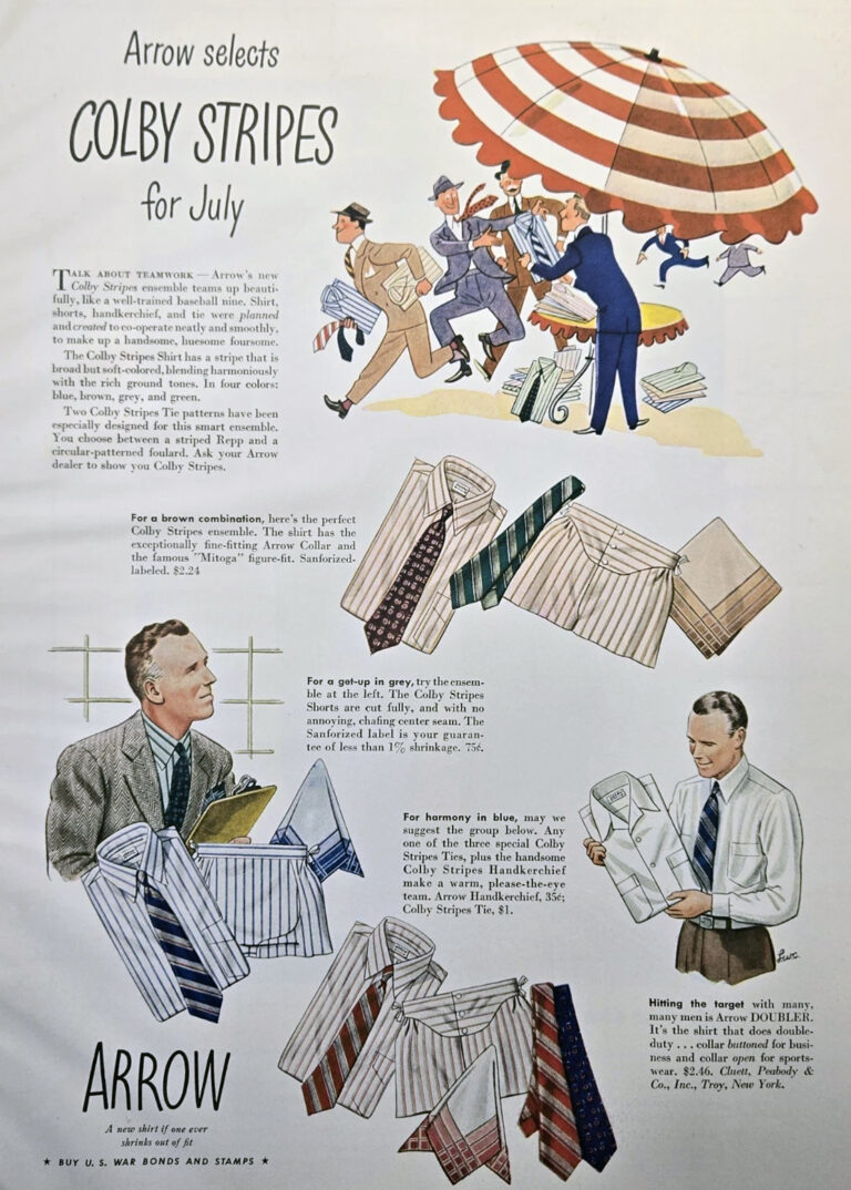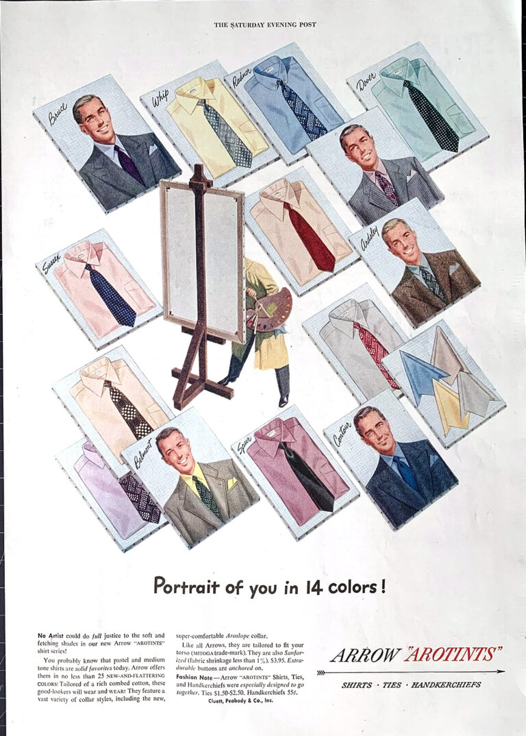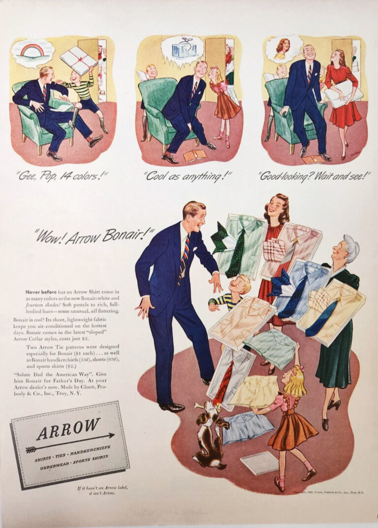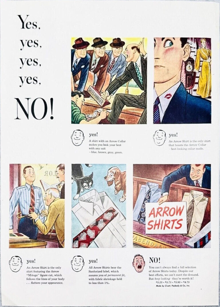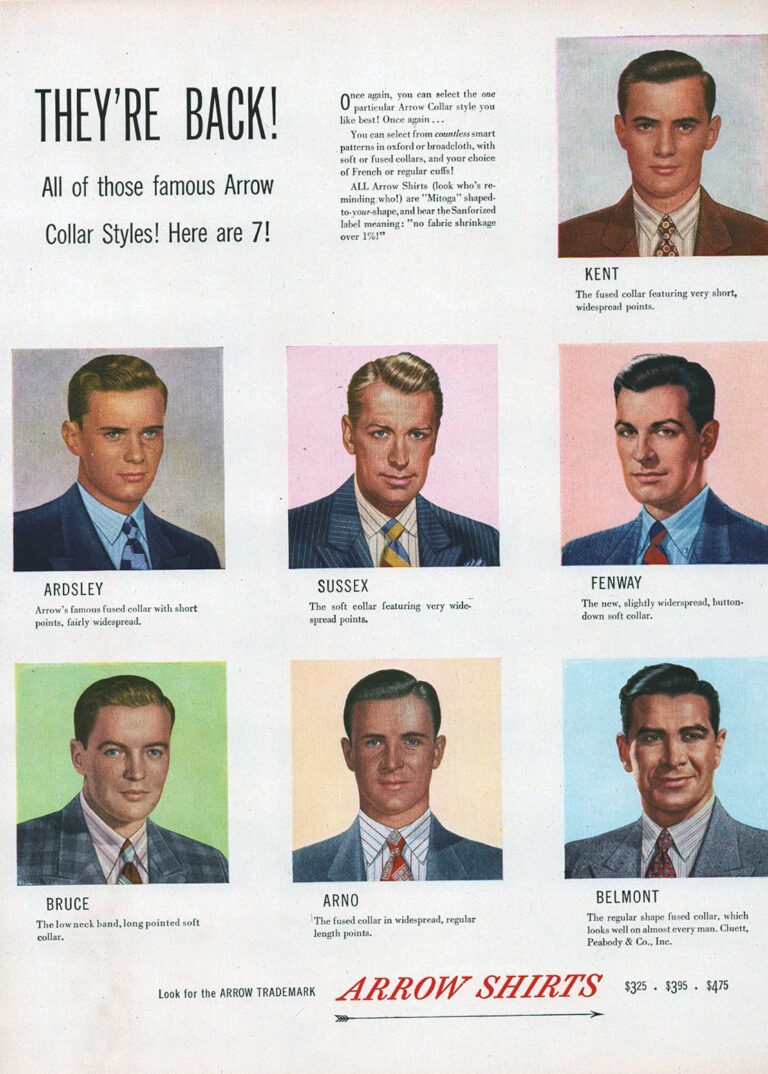 1947 ARROW Shirts Print Ad “They’re Back! 7 Collar Styles”