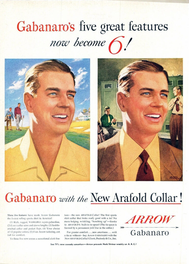 1952 LIFE Ad Advertisement ARROW Gabanaro SHIRTS 12 Colors! Arafold Collar!
