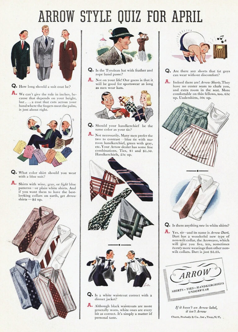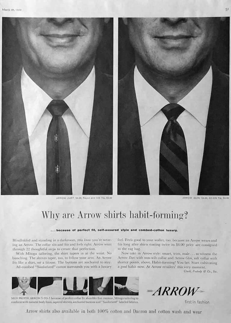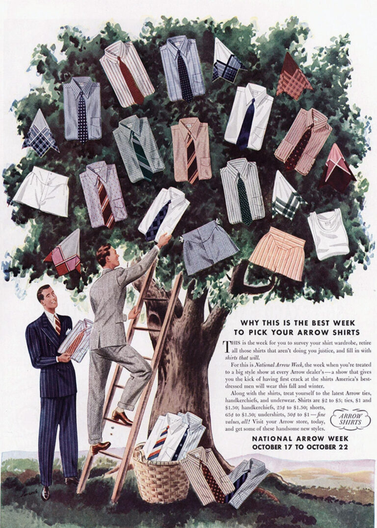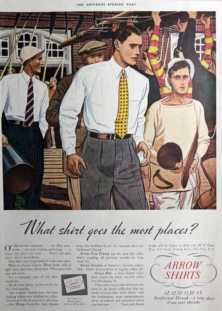 Arrow would later emerge against this historical backdrop. What had begun as a practical solution to laundering had, over time, endowed the collar with powerful symbolic meaning—signifying discipline, cleanliness, and social credibility. Drawing on this long-established cultural weight of the collar, Arrow extended that significance to the shirt as a whole, transforming it from a functional undergarment into a garment with broader social and cultural presence.