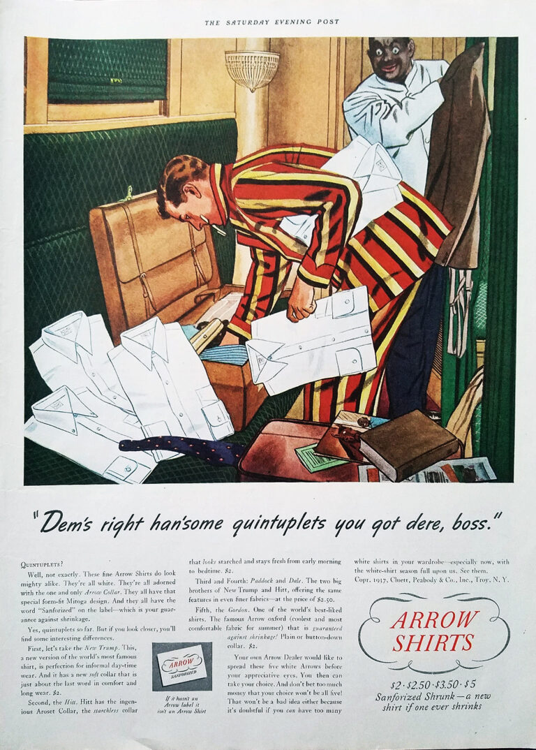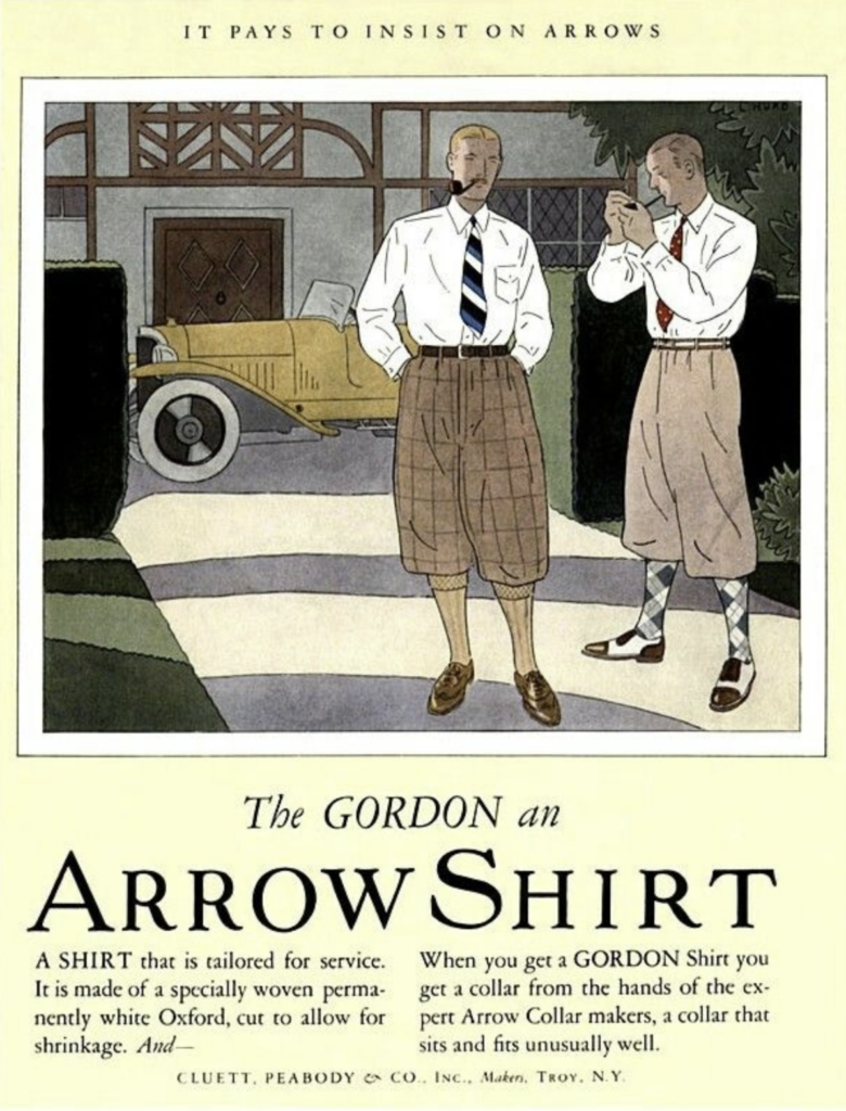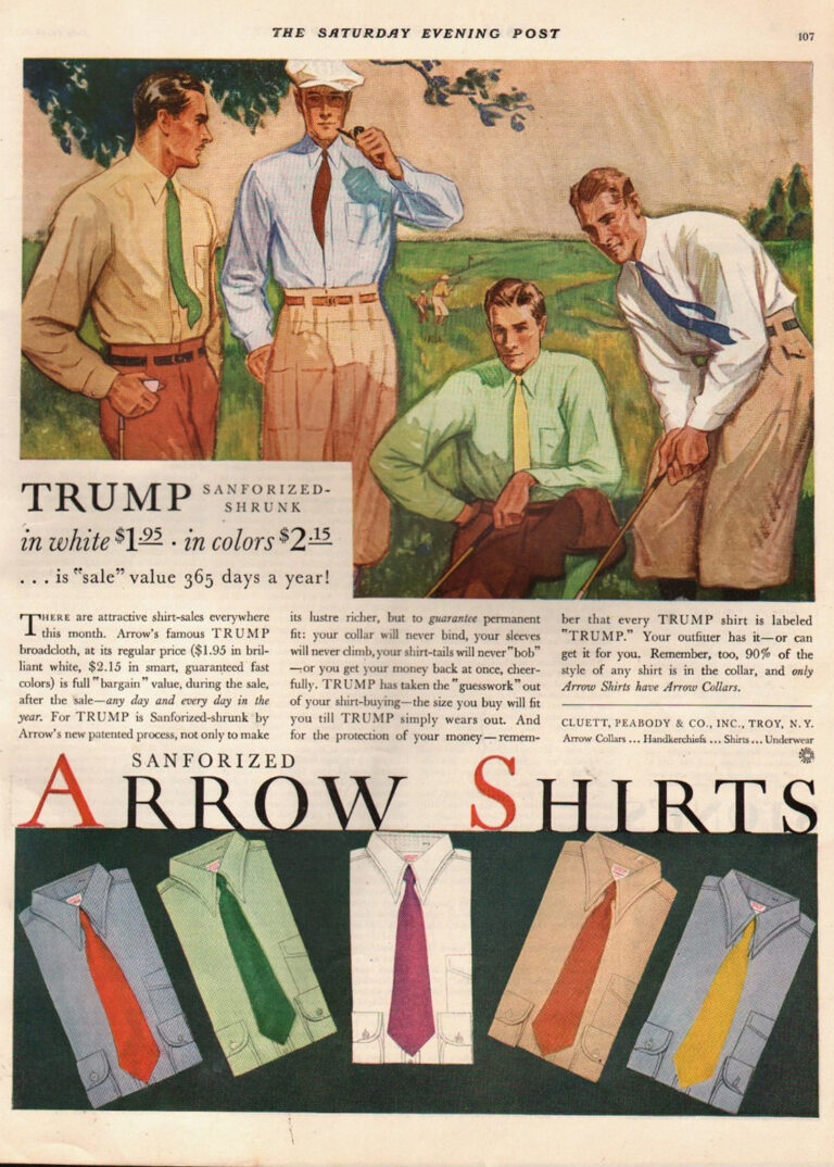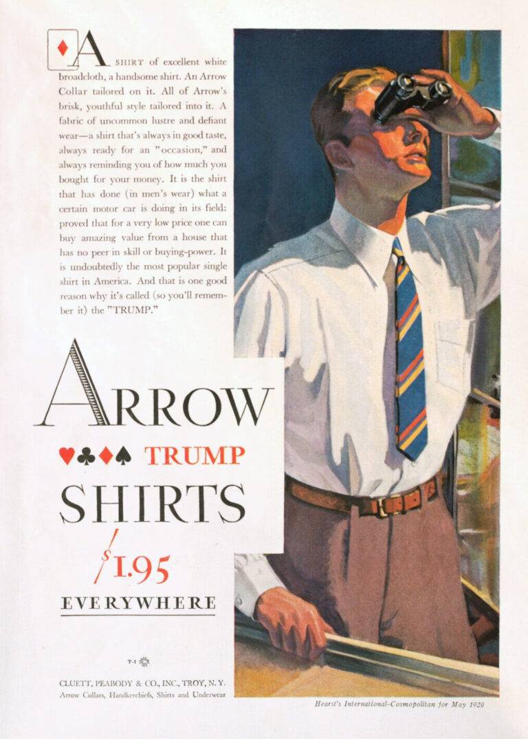 Cluett, Peabody & Company は、かつてニューヨーク州トロイを拠点とした、アメリカを代表するシャツおよびシャツ襟の製造企業である。19世紀半ばに取り外し式襟の製造から事業を開始し、やがて同地を「カラー・シティ」と呼ばれるまでに成長させた中心的存在であった。1899年に現在の社名となった同社は、当初は男性用の取り外し可能な襟を主力商品としていたが、20世紀に入ると Arrow ブランドのもとで事業を拡大する。1905年に始まった「Arrow Collar Man」の広告キャンペーンは、シャツや襟を単なる実用品から、理想的な男性像を象徴する存在へと押し上げ、ブランドの知名度を決定的なものにした。