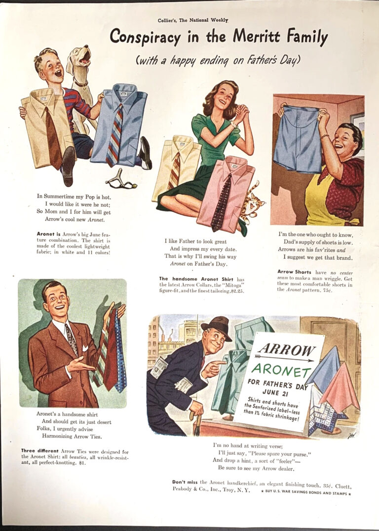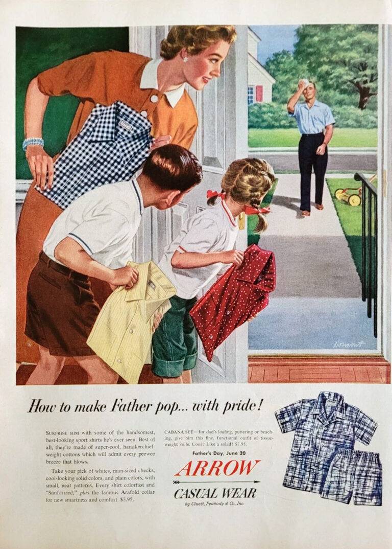 1954 VTG Original Magazine Ad ARROW Shirts How To Make Father Pop With Pride