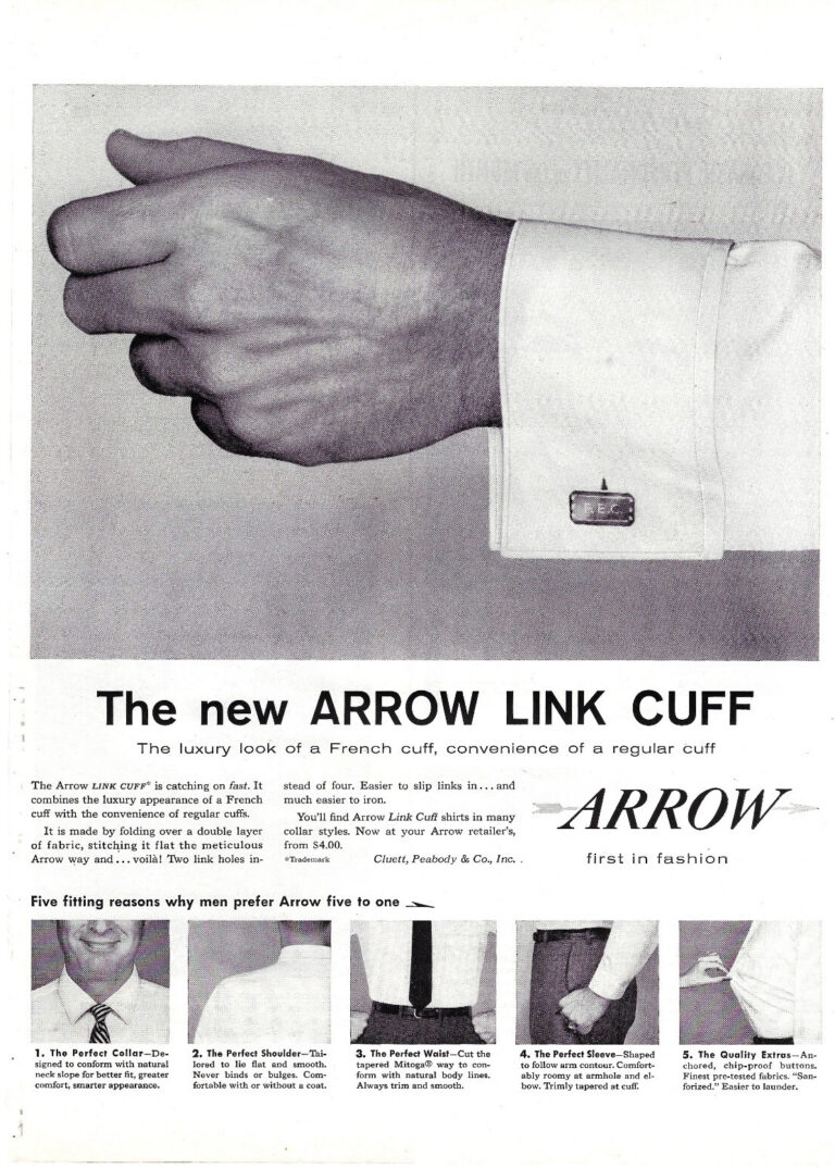 1958 Arrow Shirts Print Ad Vintage Advertisement Link Cuff