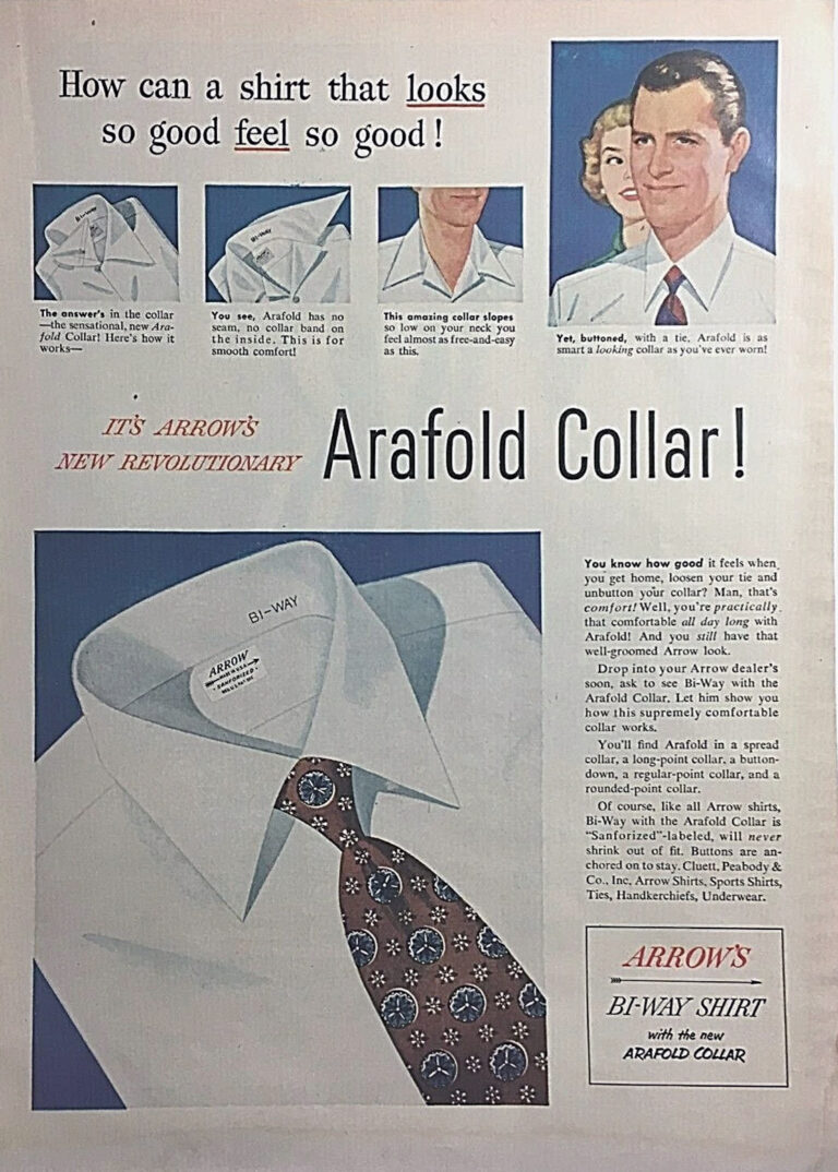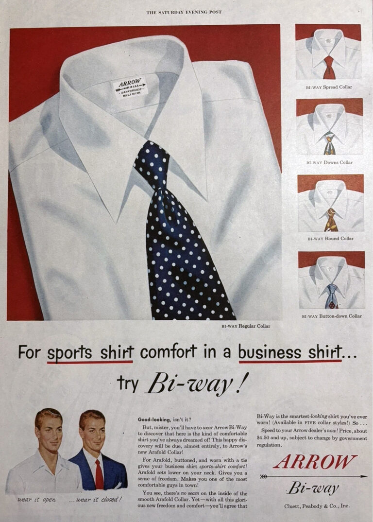 1952 Arrow Shirts Bi Way Cluett Peabody Co Business Collars Sport