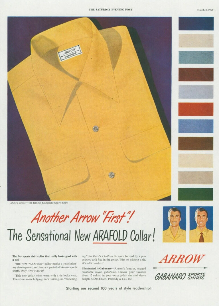 1951 Vintage Magazine Arafold Collar Arrow’s Bi-Way Shirt
