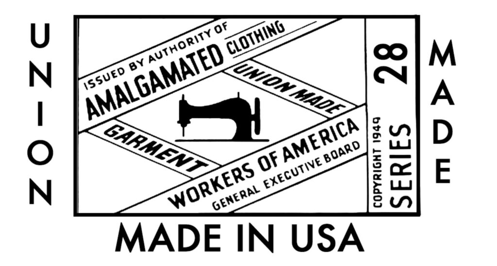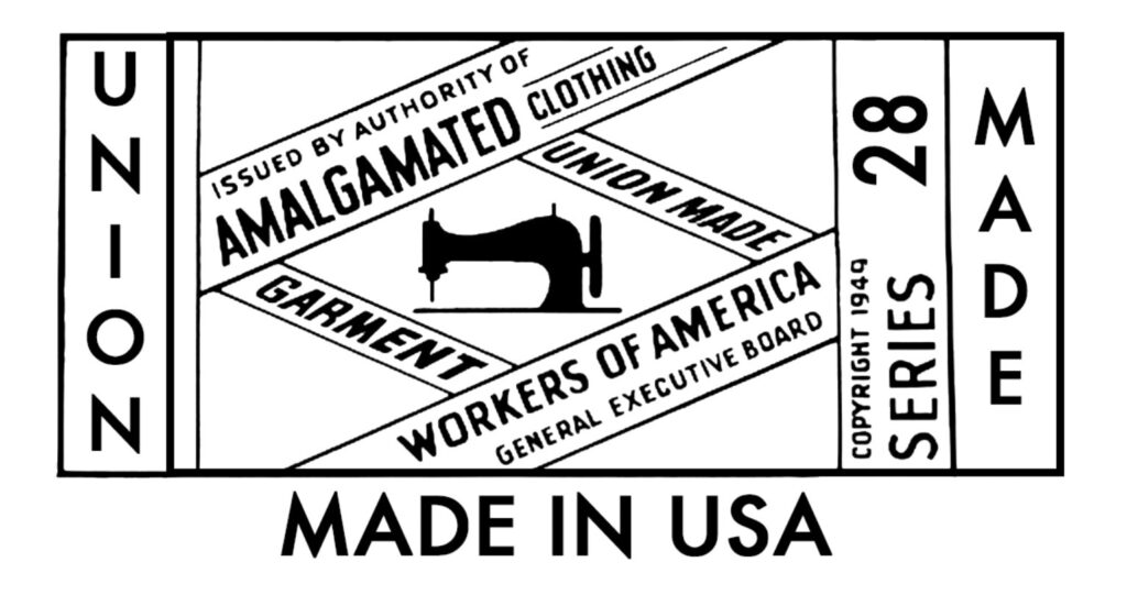 20世紀半ばのアメリカにおけるメンズ衣料産業は、組織化された労働運動、とりわけ**Amalgamated Clothing Workers of America(ACWA)**によって強く形づくられた枠組みの中で運営されていた。1914年に設立されたACWAは、既製服産業全体の労働者を代表する組織として、国内アパレル製造における標準的な労働条件の確立に中心的な役割を果たした ACWAの制度の中でも、とりわけ可視的であったのが**ユニオンラベル(Union Label)**である。これは、認可された労働条件のもとで生産された衣料品に、識別用の印を付すことを可能にする仕組みであった。これらのラベルはブランドを示すものではなく、ACWAとの協約のもと、組合化された工場でアメリカ国内生産された製品であることを示すものであった。この意味において、ユニオンラベルは「MADE IN USA」表記の制度的な対応物として機能し、労働基準を衣料品そのものの中に組み込む役割を担っていた。この制度のもと、各メーカーには固有のユニオンラベル番号が割り当てられていた。GANTはユニオンラベル番号28を使用しており、これは同社がアメリカ製造期においてACWAの管理下にある生産体制に属していたことを示している。ユニオンラベルの存在は、デザインや縫製仕様の差異を示すものではなかったが、その製品が国内で生産され、定められた労働基準を満たしていることを証明するものであった。