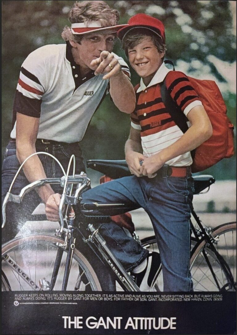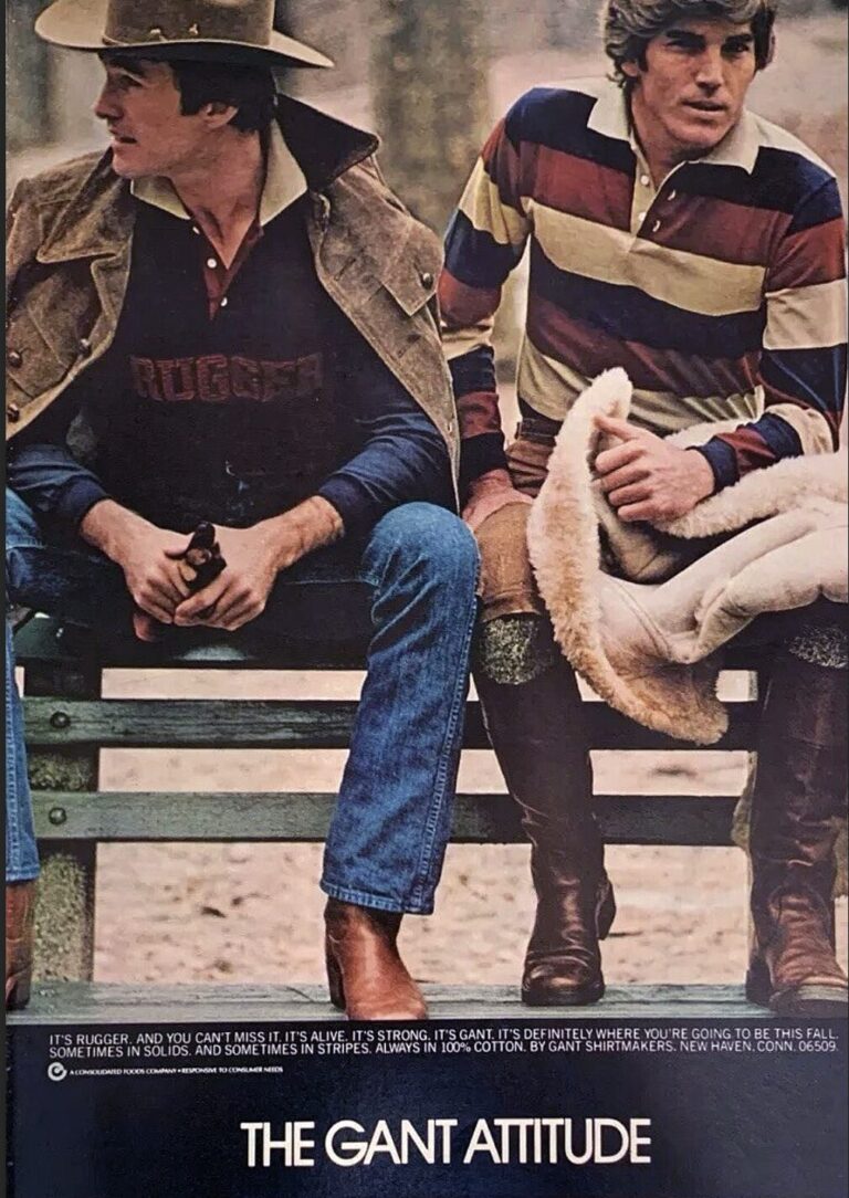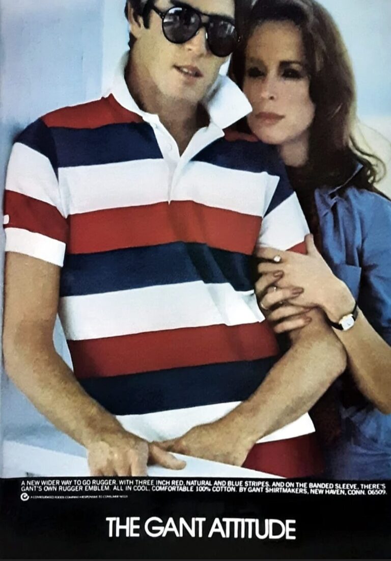 1960年代まで、GANTはアメリカを代表するシャツメーカーとして、特にボタンダウンシャツで知られていました。1968年に Consolidated Foods Corporation(CFC) の傘下に入った後、経営陣はドレスシャツ以外の分野での展開を模索するようになります。その過程で、大学を中心に着用されていたラグビーシャツに着目し、「RUGGER」 という名称が1973年に採用されました。1974年には同名称での商品が市場に投入され、これが後に GANT RUGGER と呼ばれるラインの始まりとなります。
