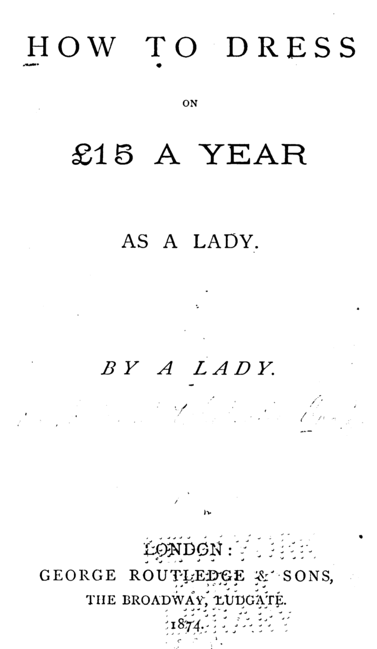 1873 T How to dress on £15 a year as a lady. By a lady. [i.e. M.W. Cook]