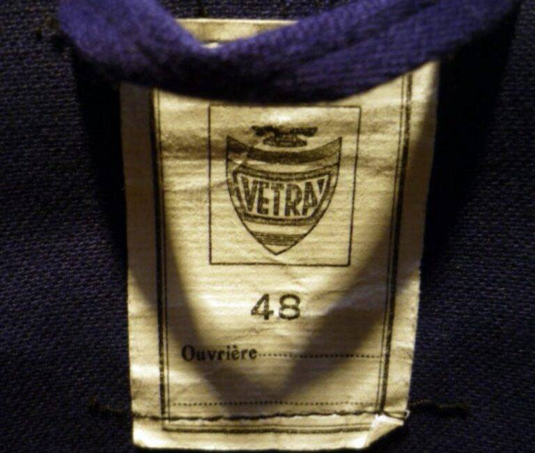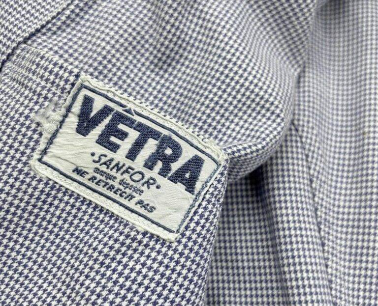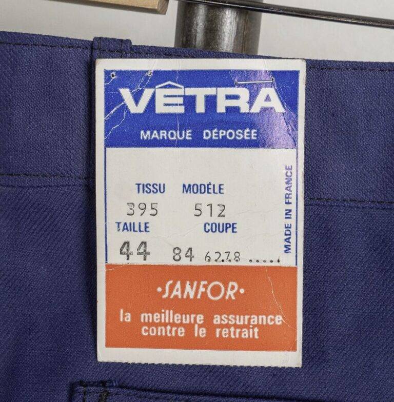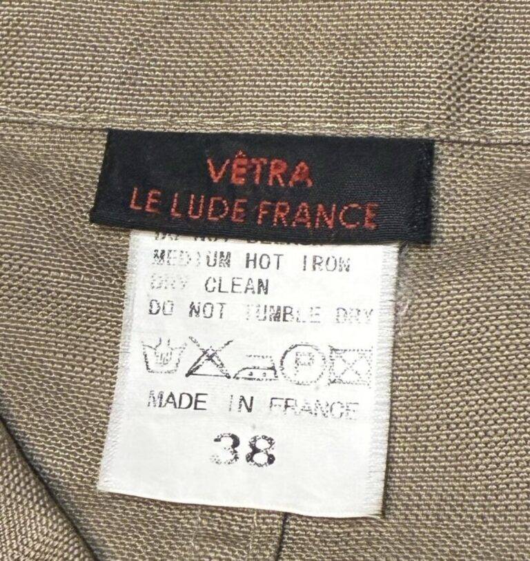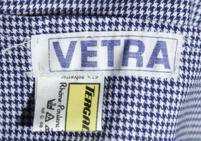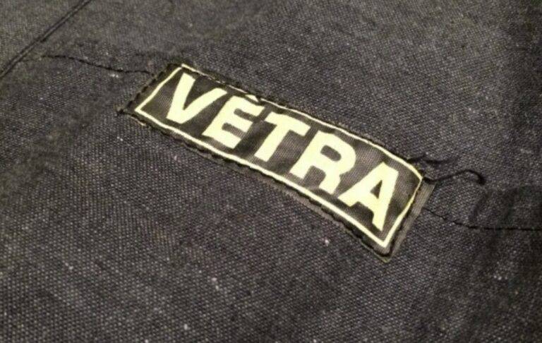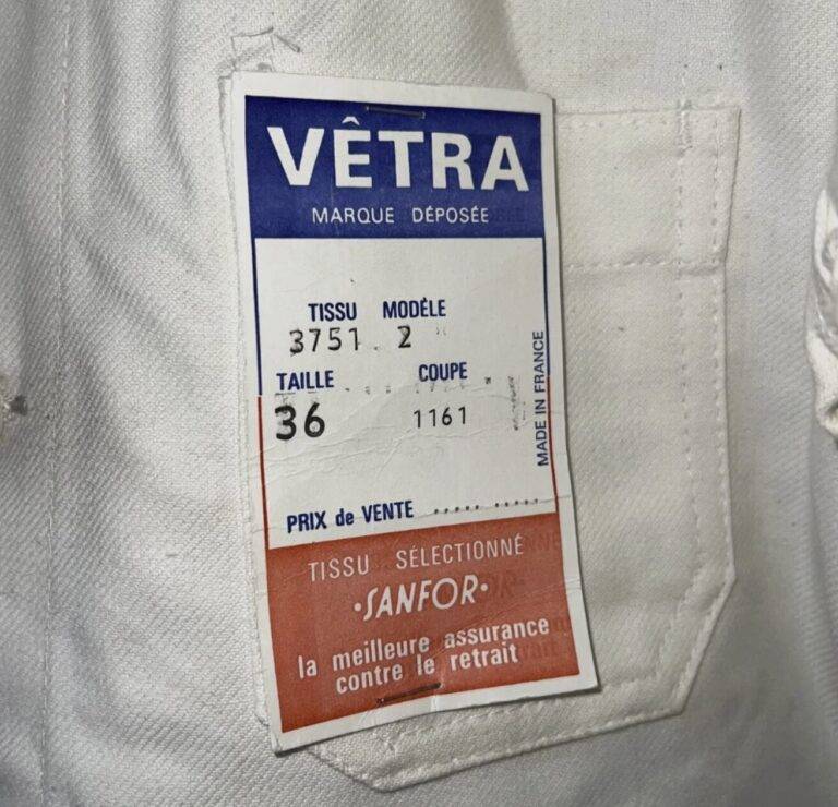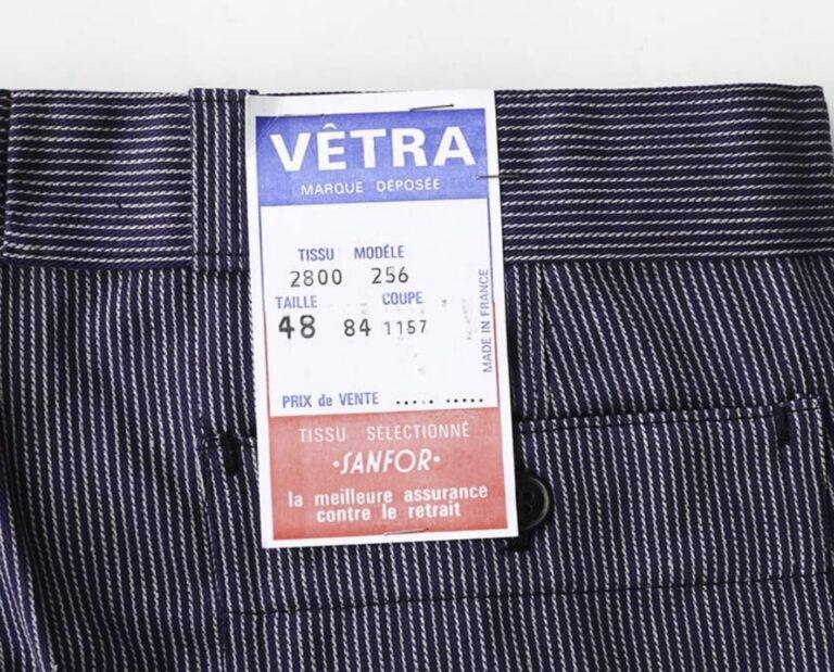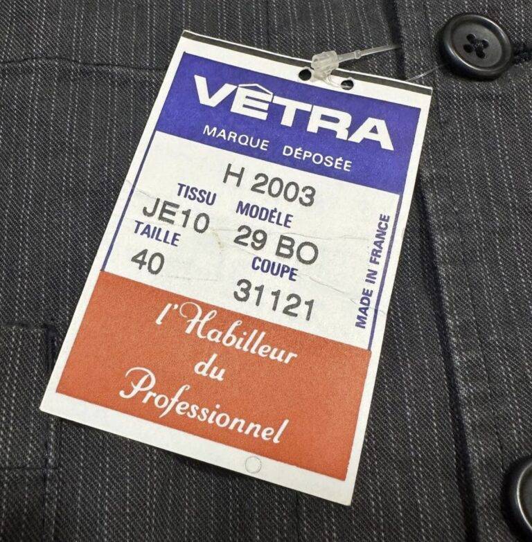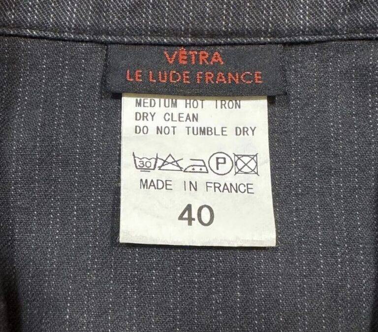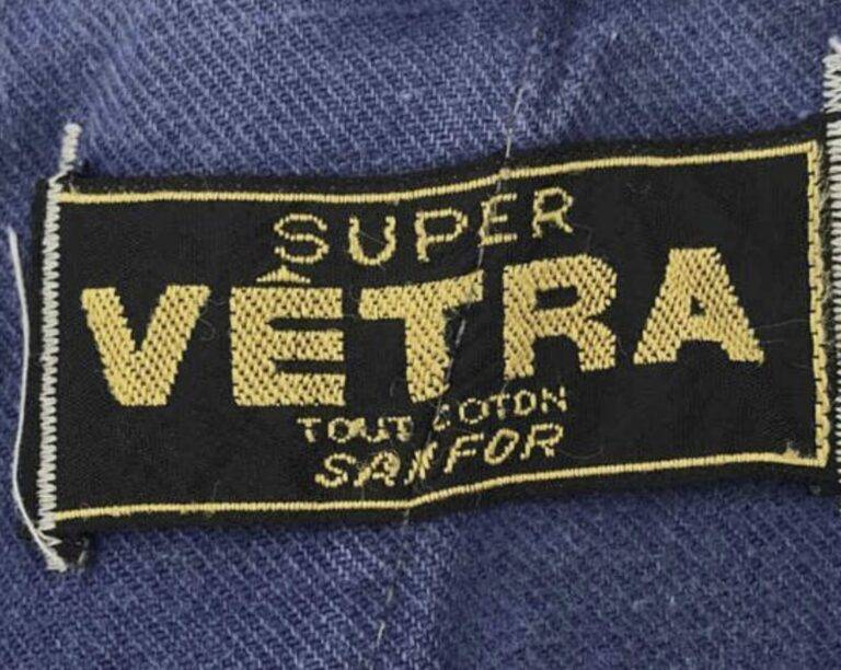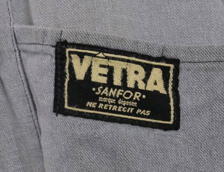 1970年代から80年代にかけて、タグのタイポグラフィは視認性の高い縦長のモダンな書体へと移行しました。この時期、VÉTRAはその堅牢な製造背景を活かし、自社ブランドのみならず、1989年に自社工場を閉鎖したDANTONなどの伝統的なブランドの権利や製造を承継・管理する役割を担うようになります。