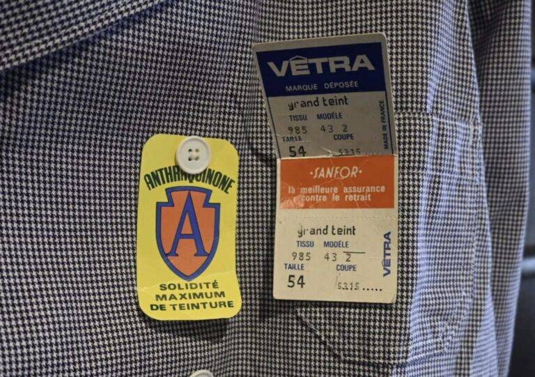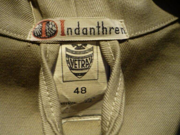 The meaning of the Indanthren tag: In Image 3, the “Indanthren” tag sewn above the VETRA print tag is a trademark for vat dyes developed by the German company IG Farben.