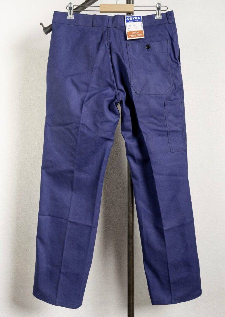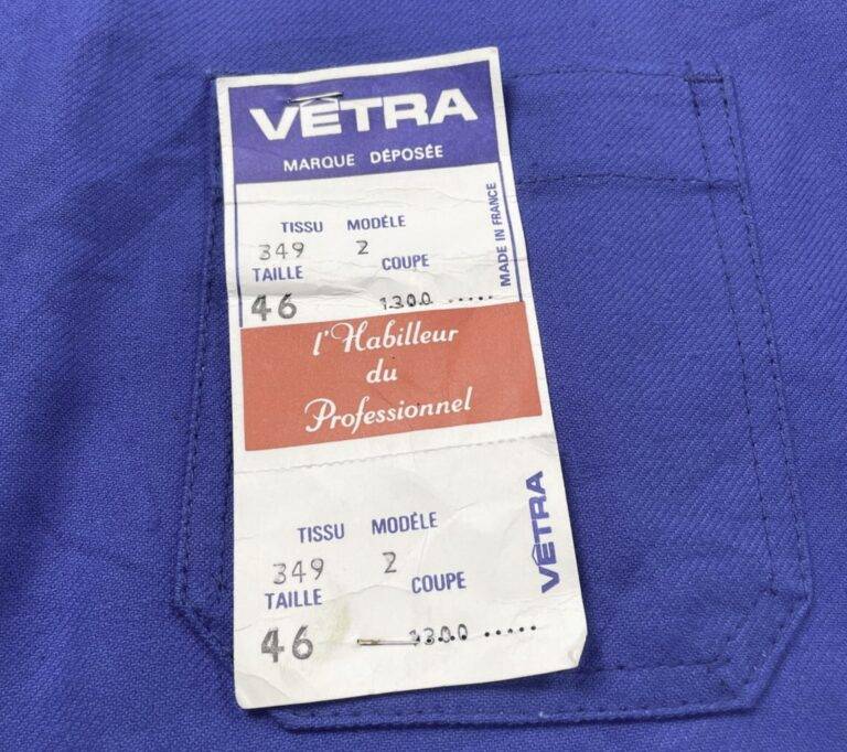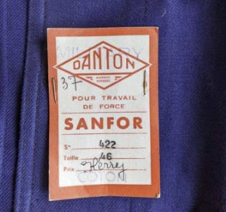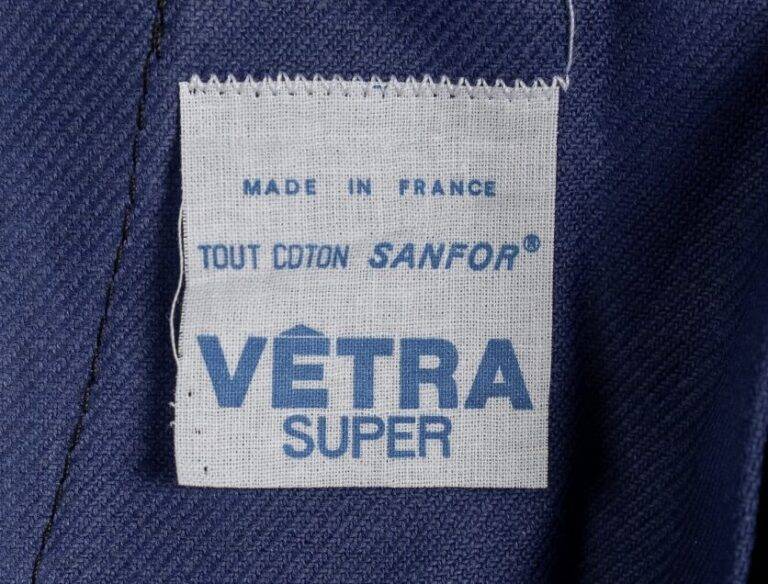 第二次世界大戦中の1941年、戦火を避けるためフランス中西部のサルト県**ル・リュド(Le Lude)**に工場を移転しました。戦後は高度経済成長に伴い、品質保証の仕組みを近代化させます。タグには「SANFOR(防縮加工)」や「ANTHRAQUINONE(アントラキノン系染料)」といった技術商標が記されるようになり、フランスの労働階級を支える「頑丈で色落ちしない作業着」としての地位を不動のものにしました。